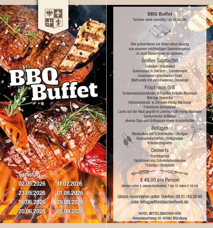 Bei unserem beliebten Whisky-Dinner verwöhnen wir Sie mit einem exklusiven Menü mit korrespondierenden Whiskyspezialitäten vom Würzburger Fachhandel »Roesch Spirituosen & Tabak«. Kommentiert von unserem charmanten Whisky-Experten Herrn Gradl.
